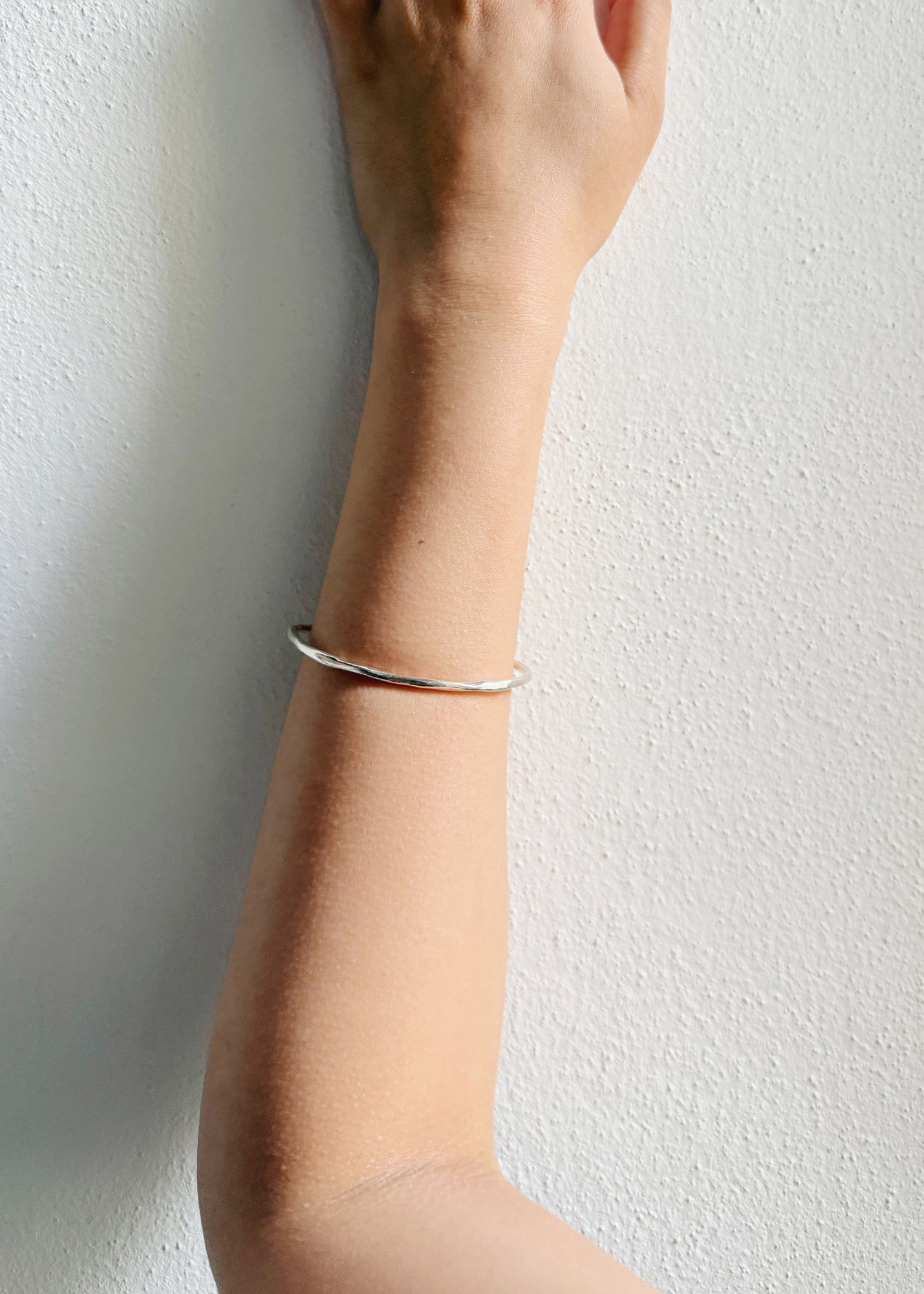 大大的橢圓 起伏的線條 像是呼吸的氣息 細細的有起起伏伏的細節 可以微微凹成合你手腕的形狀 尺寸需測量手掌圍(位置在大拇指關節處) 可以用要把手環套進去的手勢測量 The Shape Within 內側的形狀 我們每個人心中都藏著一些形狀 沒有固定輪廓,時而變形、延展、崩解 它們存在於情緒轉折中 存在於感知的縫隙裡 我試著描出這些形狀— 在形體與身體之間 也許你可以感受到某種熟悉的模糊感 無法說清楚 但你知道你有過這個感覺 Each of us holds unspoken shapes within. They do not follow clear contours. They shift, stretch, collapse—formed by emotion, softened by memory. I try to trace them— Between body and shape, I hope to evoke a kind of quiet recognition a feeling you can’t name, but know you’ve felt before.